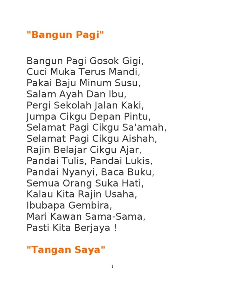Single lainnya dari di antaranya lagu ikan, ku sapa hello, main bareng, di sini senang, dan pok ame ame. Bangun pagi bangun pagi gosok gigi, cuci muka terus mandi, pakai baju minum susu, salam ayah dan ibu, Azzahra kids preschool programme ages 4 6 2012. | smule social singing karaoke app. Lirik lagu kanak kanak berbahasa taska permata ungu facebook.
